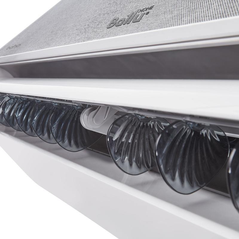 - Для максимального комфорта была разработана уникальная форма жалюзи на 180°, обеспечивающая равномерный поток воздуха вдоль потолка или пола.